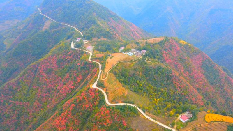 从曲折公路向秦岭腹地望去,五彩秋光层层叠叠地铺展开来。那满眼的斑斓美得令人心醉,壮阔得震撼人心;古朴村庄与苍茫秦岭相映成趣,勾勒出一幅和谐静谧的秋日图景,成了都市人逃离喧嚣、拥抱自然的向往之地。