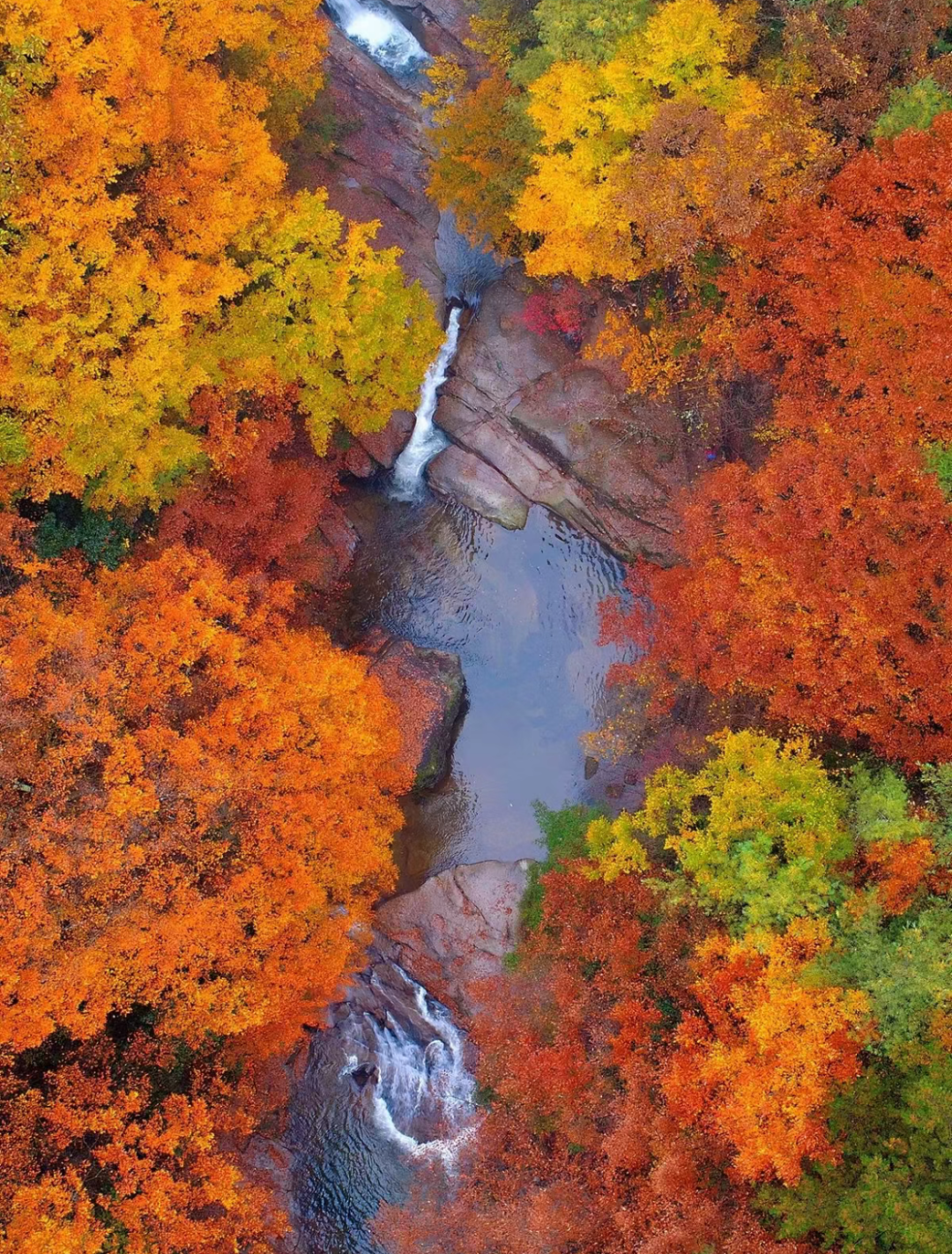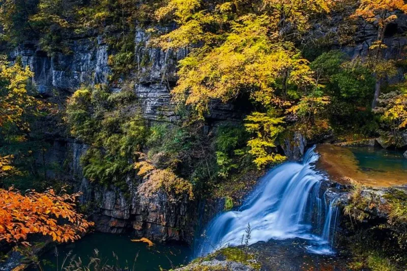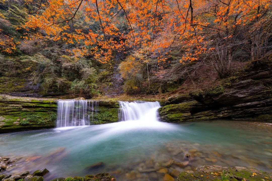 在黄柏塬的秘境深处,藏着一处被大自然偏爱的地方——大箭沟。这条被誉为“秦岭小九寨”的山涧,以它变幻莫测的水色、斑斓的河床与层林尽染的红叶,编织出一幅令人窒息的视觉奇观。当秋意浸染秦岭,这里便成了色彩的魔法世界,每一寸山水都流淌着诗意,每一眼都美到心颤。