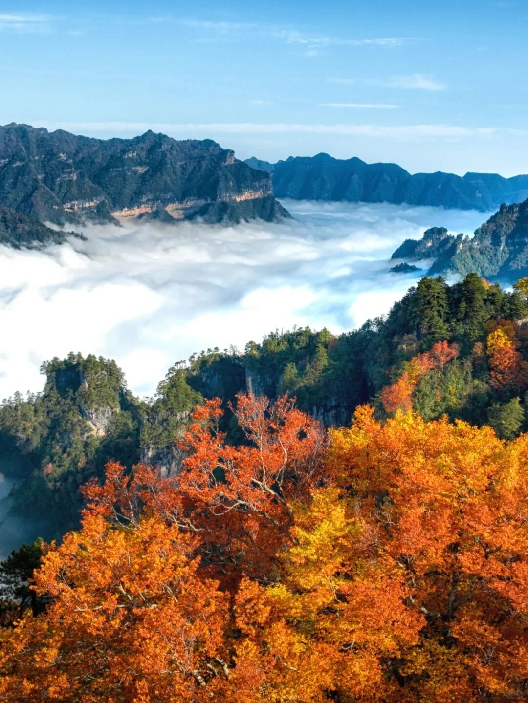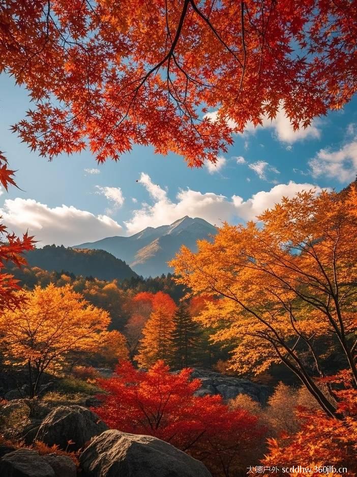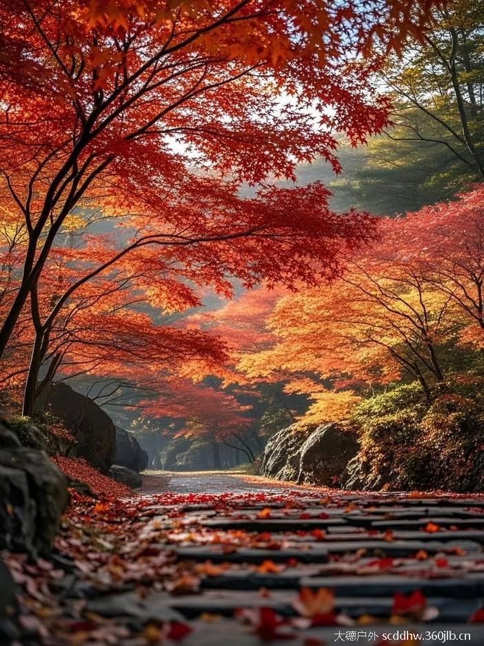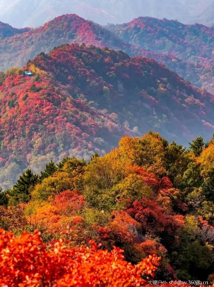 连绵数千公里如火的枫叶,如彩霞披落山体,在秋日暖阳的映衬下,显得更加绚烂迷人!