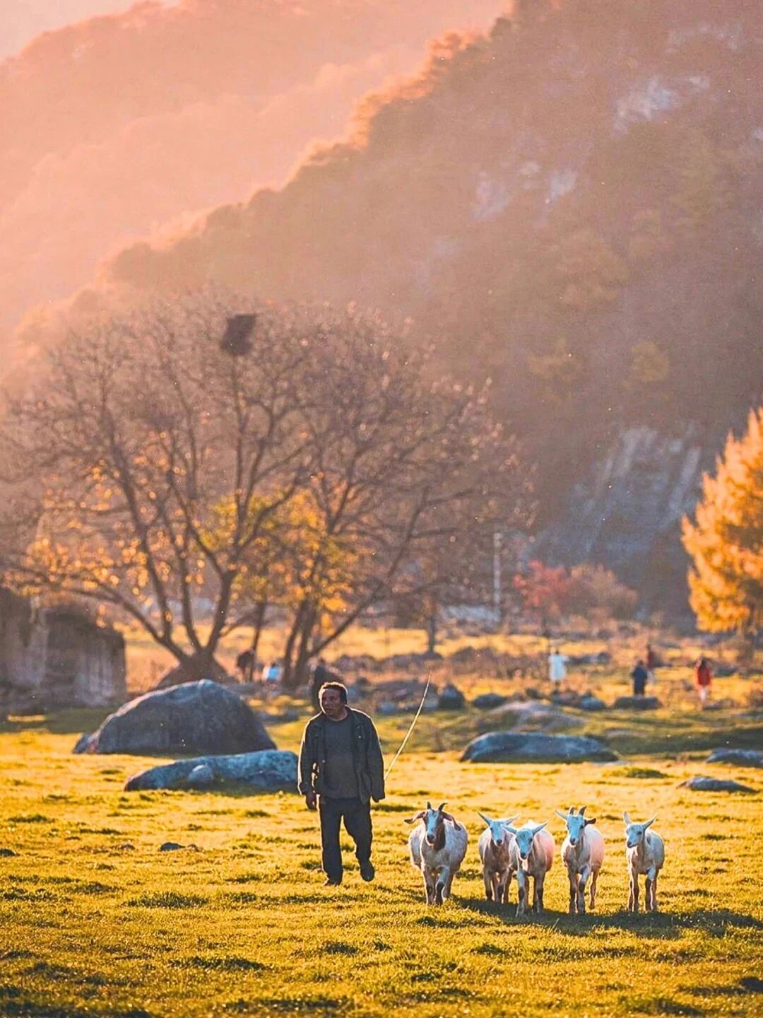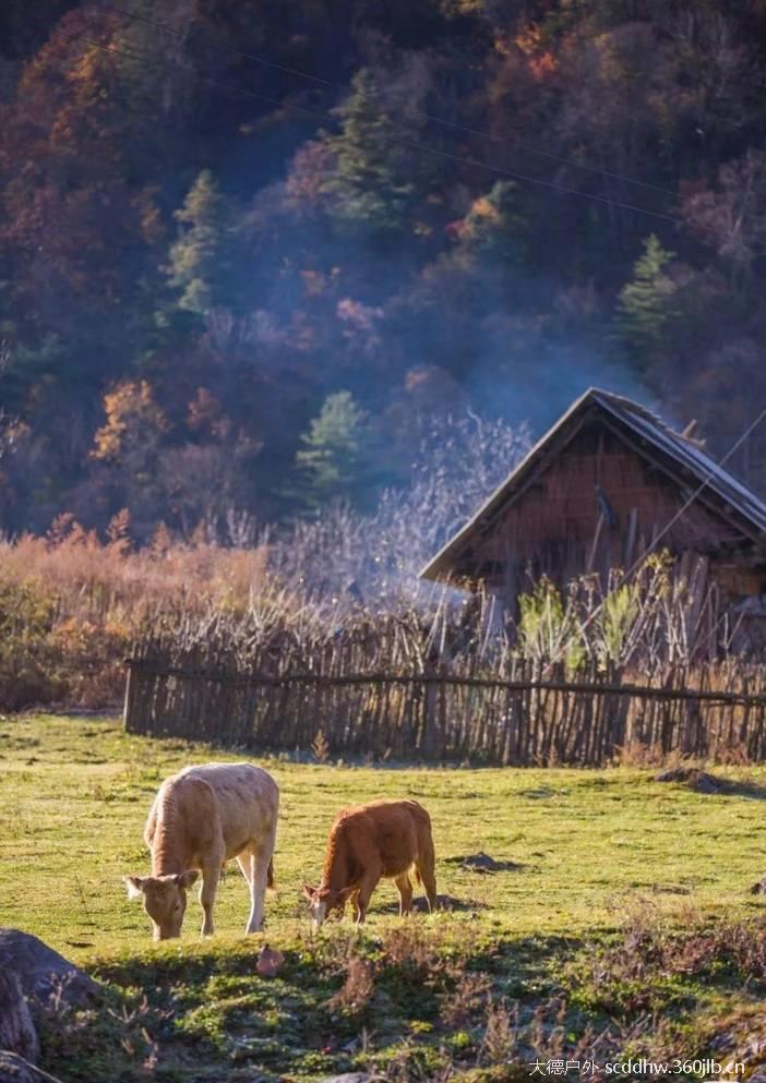 小木屋升起袅袅炊烟,和着清新的空气,和煦的阳光,颇有种“诗意田园”的味道!