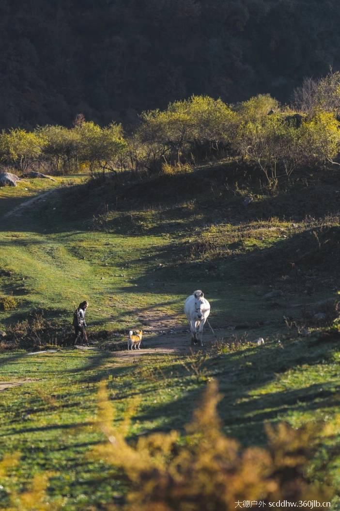 狮子沟牧场保留着最原始的山野风貌:起伏的草甸如绿绒毯铺展,秋来转为金黄,与远处的冷杉红黄交织,构成一幅浓墨重彩的油画。蜿蜒的溪流穿谷而过,水质清冽如镜,倒映着斑斓树影与蓝天白云。成群的牛羊散落其间,或悠然漫步,或低头觅食,牧歌悠扬,仿佛时光在此停滞。当秋风掠过,草浪翻滚,金黄的松叶簌簌飘落,恍若踏入童话书中的秋日秘境。