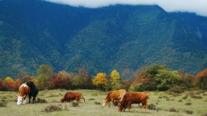 云中牧场位于卧龙自然保护区,周边生活着大量的国家珍惜野生动、植物,四周群山环绕,草甸视野开阔,其中蓝天、白云、森林、牦牛……组成自然和谐的场景,令人忍不住坐下来享受片刻的美好宁静