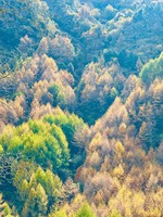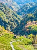 秋季,这里也是一处观彩林的好地方,云雾缭绕,远山时隐时现,山间间插彩林,一种色彩泼染的感觉。在城市生活久了,这样的地方总能使人感到舒适。