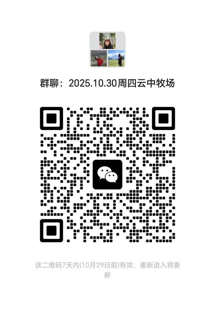 报名后请扫下面二维码进入临时活动群,方便接受活动通知消息。座位表及车牌号出发前一天发在活动群里