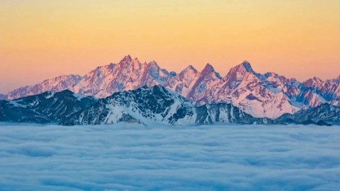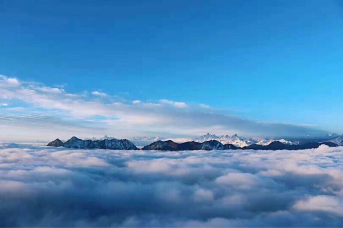 3、同样有云海,日照金山,能直观清晰的看到蜀山皇后—四姑娘山的幺妹峰。