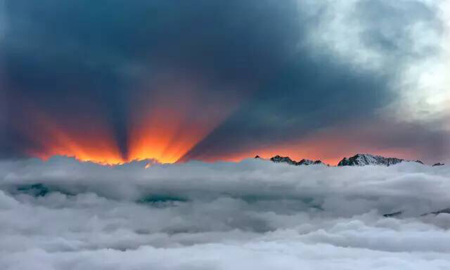 欣赏群山之巅的日落,晚上数星星,第二天一早等待太阳的日出,欣赏比牛背山更为广阔的云海。